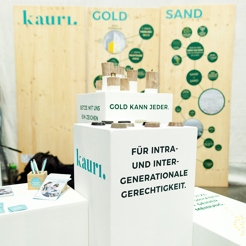 KAURI wird mit einzigartigen Ringen die Schmuckbranche revolutionieren um rohstoffbewusstes Handeln und ein global faires Miteinander zu fördern. Das Rohstoffbewusstsein bezieht sich insbesondere auf das Konfliktmetall Gold. 60% des jemals abgebauten Goldes steckt in Schmuck. KAURI möchte mit nachhaltigeren und faireren Ringen einen Beitrag leisten, dass zukünftig maximal Fairtrade und Fairmined Bergbau betrieben wird. Damit einher geht der Wunsch nach intra- und intergenerationaler Gerechtigkeit: Einerseits Gerechtigkeit zwischen Gesellschaften, die in rohstoffreichen Ländern leben und die Konsequenzen des Bergbaus erleiden, und Gesellschaften, deren Nachfrage den Bergbau antreibt. Andererseits (Ressourcen-)Gerechtigkeit zwischen unserer Generation und jenen, die später geboren wurden oder erst noch geboren werden. Konsumentinnen und Konsumenten werden darauf aufmerksam gemacht, dass jegliche Kaufentscheidung Einfluss auf die Enkelkinder haben kann. KAURIs erste Kollektion sind Ringe aus Sand.