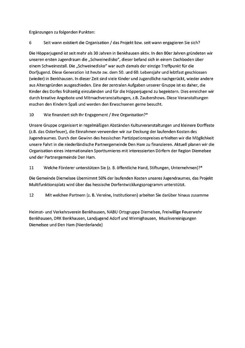 - Organisation: Höpperjugend Benkhausen