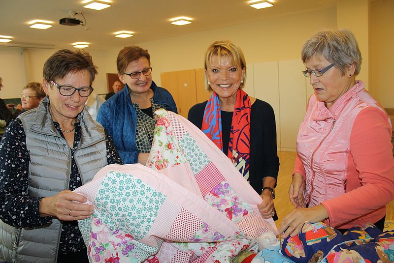 2015 wurde das Aktionsteam mini decki Schwabach, eine Nähgruppe, von Ute Wolfram gegründet. Alle geflüchteten Kinder, die nach Deutschland kommen, sollten einen Willkommensgruß in Form einer selbstgenähten Kuscheldecke bekommen, die Trost und Wärme spendet. In den Räumen einer Gemeinschaftsunterkunft nähen geflüchtete Menschen unterschiedlicher Herkunft zusammen mit deutschen Frauen süße Kinderdecken. Mittlerweile werden die Kinder der Integrationsklassen zu Feiertagen von der Gruppe mit Stiftemäppchen, Turnbeuteln, Mützen und Schals beschenkt. Außerdem näht die Gruppe, die mittlerweile "Genäht mit Herz" heißt, für die Kinder des Frauenhauses Schwabach (z.B. Mützen, Turnbeutel) sowie für krebskranke Kinder (bunte Katheterbeutelhüllen) und für Altenheime (Nesteldecken). Ute Wolframs Ziel ist zum einen, geflüchtete Menschen in gemeinnützige Tätigkeiten einzubinden, sie zu integrieren, und zu zeigen, wieviel Spaß es macht, andere, benachteiligte und bedürftige Menschen zu beschenken.