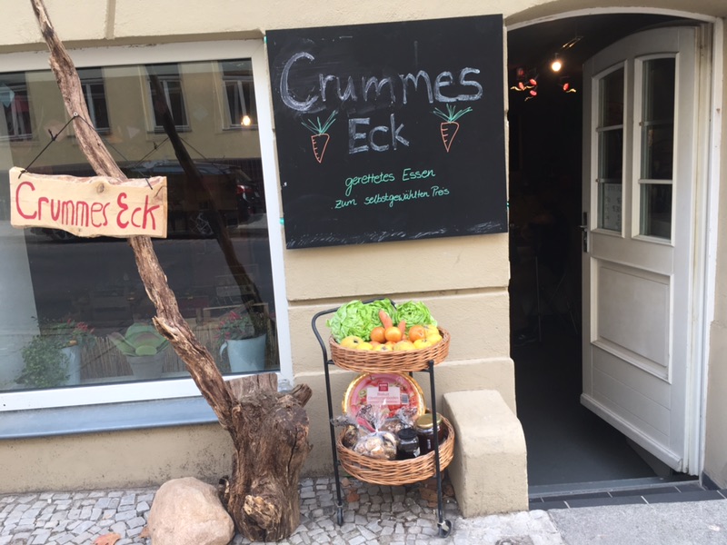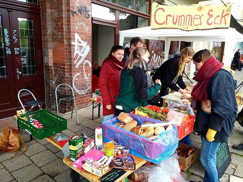 Das Crumme Eck ist ein Retterladen in Halle (Saale), der allen Menschen die Möglichkeit gibt, sich dem Verschwendungs-Irrsinn von Lebensmitteln im Rahmen der eigenen Möglichkeiten zu entziehen. Große Supermarktketten, Bäcker sowie Tankstellen retten fleißig mit, indem sie Obst, Gemüse, Backwaren, Kühl- und Trockenwaren bereit stellen, die nicht mehr zum Verkauf geeignet, aber noch absolut genießbar sind. Das Crumme Eck holt diese Lebensmittel ab und bietet sie in einem Laden an drei Tagen in der Woche gegen freiwillige Spenden an. Die Spenden werden für die Instandhaltung des Ladens genutzt und überschüssige Einnahmen fördern lokale, nachhaltige Projekte. Im ladeneigenen Tauschflur können Kleidung und Bücher vorbeigebracht und mitgenommen werden. Ein Mach-Raum lädt dazu ein, Visionen entstehen zu lassen und Ideen in die Tat umzusetzen. Und für einen kleinen zusätzlichen Lagerraum ist auch noch Platz, den die Food-Coop Gürkchen für ihre Bestellgemeinschaft nutzt.