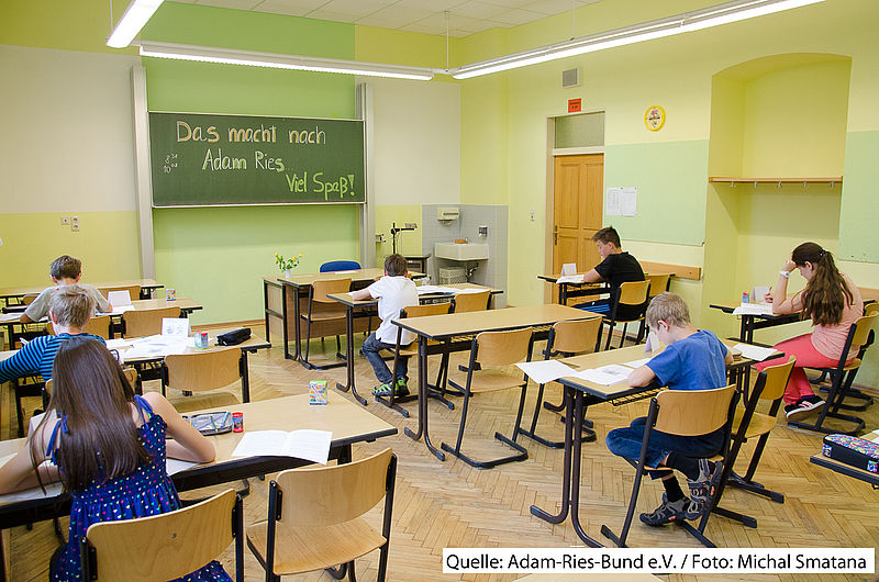 Der Adam-Ries-Wettbewerb wendet sich an SchülerInnen der Klassenstufe 5 und verfolgt das Ziel, mathematische Interessen zu wecken, Wissen und Geschick beim Lösen problemhafter Aufgaben sowie Freude am Knobeln und Rechnen zu vermitteln, Anregungen zum historischen Streifzug in die Regional- und Mathematikgeschichte zu geben, Neugier auf alte deutsche Maß- und Geldeinheiten zu erzeugen und sich mit dem Werk von Adam Ries altersgerecht zu befassen. Der Wettbewerb dient sowohl der Breiten- als auch der Spitzenförderung mathematisch interessierter SchülerInnen. Für die 1. Stufe – ein kombinierter Hausaufgabenteil und eine Klausur an der Heimatschule – werden den FachlehrerInnen ausführliche Lösungshinweise und Arbeitsmaterialien bereitgestellt. Die erfolgreichen Teilnehmenden sollen sich so für zukünftige mathematische Wettbewerbe wie z. B. die bundesweiten Mathematik-Olympiaden interessieren.
