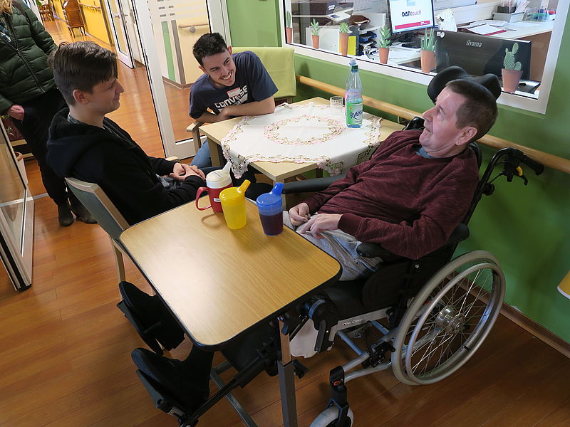 Das Projekt Walk the Talk im Generationshaus des Remeyerhofs der AWO in Worms findet als fester Termin einmal in der Woche für vier Stunden statt. Zusätzlich begleiten die Beteiligten die Bewohnerinnen und Bewohner bei Arztbesuchenn und organisieren und unterstützen bei Veranstaltungen. Die Gruppe befindet sich in einer berufsvorbereitenden Bildungsmaßnahme. Es sind im Durchschnitt 12-14 Jugendliche im Alter von 16-23 Jahren, die mindestens für einen Zeitraum von zehn Monaten an dem Projekt und auch über diese Zeit hinaus freiwillig ehrenamtlich mitwirken. Die Betreuung findet immer sehr individuell statt. Häufig finden sich der Bewohnerinnen und Bewohner und der Jugendliche mit den jeweiligen gemeinsamen Interessen und sie verbringen das gesamte Jahr einmal die Woche zusammen. Morgens startet das Projekt mit einem Meeting mit der Ehrenamts-Koordination der AWO. Es wird besprochen, welche Bewohnerin bzw. welcher Bewohner gerne spazieren geht, sich unterhalten, zum Arzt, singen, basteln, lesen oder spielen möchte usw. Wie es den Bewohnerinnen und Bewohnern aktuell geht und was die Wünsche sind. Diese werden wenn immer es möglich ist erfüllt. Neben der Einzelbetreuung der Bewohnerinnen und Bewohner gehen auch immer einige Schülerinnen und Schülern in den Demenz Wohnbereich und bringen den Menschen in der Gruppe Ideen mit. Das kann eine Malaktion, eine Aktivierungsübung oder eine Geschichte von damals sein. Über das Projekt bekommen die Jugendlichen Kontakt mit dem Berufsbild Altenpflege.