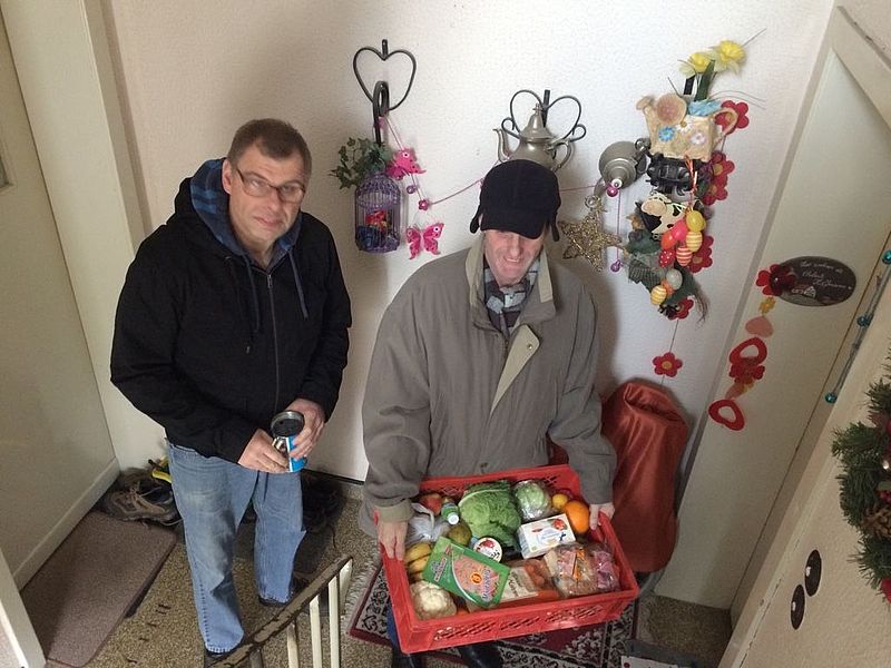 Im November 2015 hatte die Willicher Tafel aufgrund des hohen Bedarfs an Personal in der wöchentlichen Ausgabe das Problem, die kranken Bedürftigen nicht mehr mit den gespendeten Lebensmitteln zu Hause versorgen zu können. So wandten sie sich an das Freiwilligen Zentrum in Willich auf der Suche nach Ehrenamtlichen. Zur gleichen Zeit zeigte sich in der Wohnstätte der Lebenshilfe Viersen „Unser Haus“, dass für die Menschen, die aufgrund ihrer extremen Verhaltensauffälligkeiten nicht die Werkstatt für behinderte Menschen besuchen können, das therapeutische Mittel der Arbeit fehlt, was nicht durch kreative Angebote aufgefangen werden kann. Aber jeder Mensch hat eine Ressource! So wurden für sie ehrenamtliche Einsatzmöglichkeiten für die Gesellschaft gesucht, also ein „Ehrenamt Rückwärts“! Und es hat geklappt! So fahren jeden Dienstag die Teilnehmerinnen und Teilnehmer der TaBe mit dem Bus zur Willicher Tafel, laden dort Lebensmittel für ca. 14 Bedürftige ein, fahren zu den vorgegebenen, einzelnen Adressen und bringen den Kranken die Spenden der Tafel!