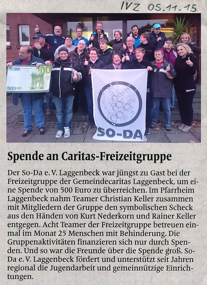 Die Gründungsversammlung des Vereins engagierte sich schon vor der Entstehung in der Jugendarbeit in ihrem Heimatort Laggenbeck, der in den 80er Jahren ca. 7.700 Einwohnerinnen und Einwohner zählte (akt. 9.300). Mit dem Jugendkeller schufen sie einen sozialen Anlaufpunkt für die Jugendlichen im Ort. Darüber hinaus organisierten sie Partys und Jugendreisen in den Ferien. Dies alles war freiwilliges Engagement in der Freizeit. Diese Gruppe von damals entschloss sich 1987 zu einer Vereinsgründung, um dem Ganzen einen Namen und damit auch eine bessere Lobby zu verschaffen. Seit dem wird in verschiedenen Sparten Sport betrieben (Fußball, Badminton, Rennrad, Mountainbike). Damit waren die regelmäßigen Treffen garantiert. Das soziale Engagement wurde beibehalten und bildet bis heute neben der Förderung des Breitensports den zweiten Schwerpunkt der Vereinsphilosophie.