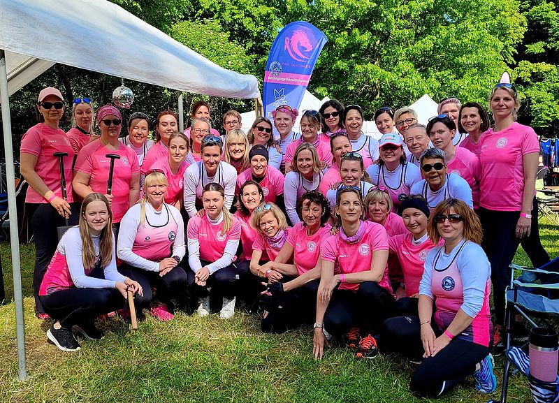 Seite an Seite im Drachenboot und gemeinsam stark gegen den (Brust)Krebs. Das ist die Mission der Brustkrebs- Drachenbootpaddlerinnen im HKC von 1921 e.V. Jede 8. Frau in Deutschland erkrankt an Brustkrebs, eine Krebsdiagnose lässt das Leben von einen auf den anderen Tag stillstehen. Drachenbootfahren hilft den Frauen, die Krebsdiagnose zu bewältigen, während der Therapie Kraft zu tanken und in ein Leben "nach dem Krebs" zurückzufinden. 1996 wurde in einer kanadischen sportmedizinischen Studie belegt, welchen Vorteil Paddeln im Drachenboot für Brustkrebspatientinnen hat. Wegen der gleichförmigen Bewegung mit dem Stechpaddel werden Lymphabflussprobleme nach Operationen gemildert und die Frauen körperlich und psychisch gestärkt. Weltweit gibt es diese sog. "Pink Paddling"- Teams. Seit 2017 werden auf dem Maschsee in Hannover Brustkrebspatientinnen in das Drachenboot gesetzt, seit 2019 ist das Projekt am HKC beheimatet. 2017 hatten erkrankte Frauen das 1.Team PINK DRAGONISTAS gegründet, 2022 entstand am HKC mit den HANNOVER PINKX das 2. Team. Am Standort Hannover paddeln aktuell 70 an Brustkrebs erkrankte Frauen. Die PINK DRAGONISTAS inzwischen sportlich ambitioniert und sehr erfolgreich, sie trainieren 3x die Woche, nehmen an Regatten sowie nationalen und internationalen Meisterschaften teil. Sie haben in ihrer Rennklasse BCP (Breast Cancer Paddlers) Deutsche, Europa- und Weltmeistertitel erpaddelt und führen aktuell die Weltspitze mit an. Bei den HANNOVER PINKX steht der rehabilitierende Gedanke im Vordergrund. Einmal wöchentlich treffen sich die Frauen (z.T. noch mitten in der Krebstherapie). Mit diesen beiden Formaten hat der HKC ein bedeutsames Angebot geschaffen. Daneben ist dem HKC die Sensibilisierung für die Früherkennung bei Brustkrebs ein wichtiges Anliegen.