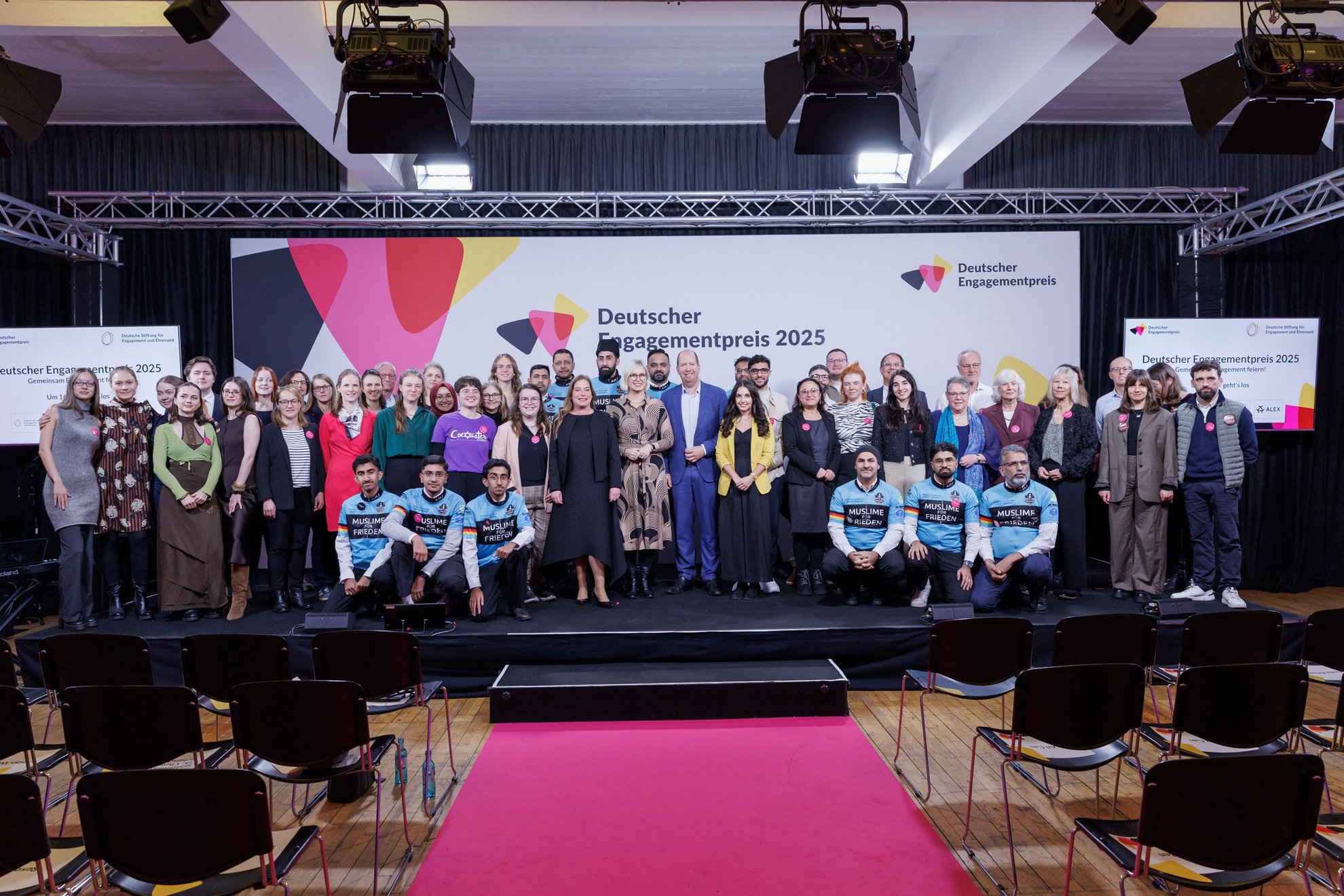 Am 5. Dezember 2025, dem Internationalen Tag des Ehrenamts, hat die Deutsche Stiftung für Engagement und Ehrenamt (DSEE) in Berlin den Deutschen Engagementpreis 2025 verliehen. Rund 400 Gäste kamen im Loewe Saal zusammen, um freiwilliges Engagement in seiner ganzen Vielfalt zu feiern. Wertschätzende Laudationen, persönliche Einblicke in die Arbeit der ausgezeichneten Initiativen und bewegende Begegnungen prägten den Abend.